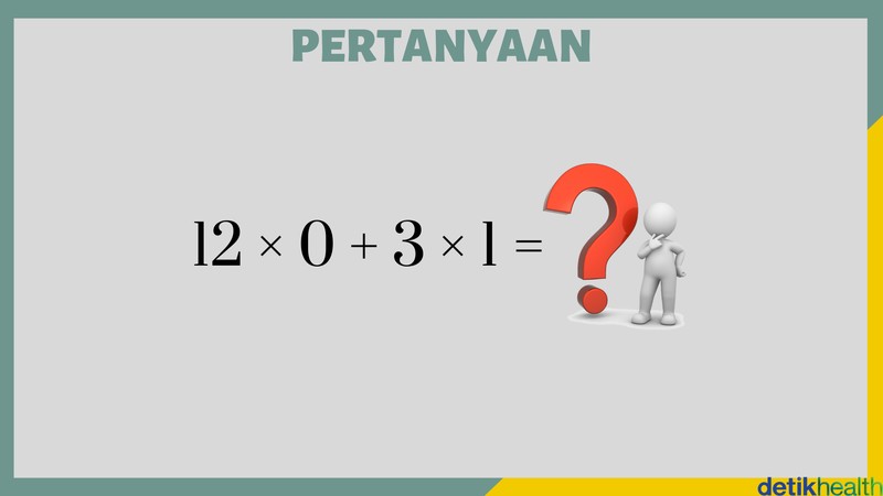 Bisa Jawab Teka-teki Matematika Anak SD Ini? Berarti Otak Masih Tajam BAGIKAN URL telah disalin Mulai dari yang sederhana dulu. (Foto: detikHealth) Ada yang dari pertama sudah keliru? (Foto: detikHealth) Coba ingat-ingat bagaimana operasi hitung dilakukan. (Foto: detikHealth) Kalau kamu menjawab satu, operasi hitung kamu masih salah. Kerjakan dari kiri ke kanan. (Foto: detikHealth) Jangan curang pakai kalkulator ya! (Foto: detikHealth) Sampai sini masih bisa? (Foto: detikHealth) Nah kalau yang ini lebih memerlukan ketelitian. (Foto: detikHealth) Karena mobil dilihat dari atas, angka nomor parkirnya dibalik. (Foto: detikHealth)