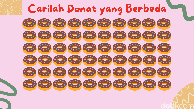 Butuh Mata Super Tajam, Siapa Bisa Temukan Jawaban Teka-teki Ini? BAGIKAN URL telah disalin Temukan donat yang berbeda di gambar ini. Foto: Atilah Tia Abelta/detikHealth Nggak perlu dizoom pasti sudah kelihatan kue yang berbeda. Foto: Atilah Tia Abelta/detikHealth Cari yang tidak punya pasangan, harus teliti. Foto: Atilah Tia Abelta/detikHealth Cukup jelas bukan bedanya? Foto: Atilah Tia Abelta/detikHealth Yuk ke soal berikutnya. Foto: Atilah Tia Abelta/detikHealth Kalau nggak ketebak mungkin kamu perlu waktu berlibur. Foto: Atilah Tia Abelta/detikHealth