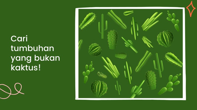 Di antara kumpulan kaktus ternyata ada tumbuhan lain loh, kamu bisa menemukannya?