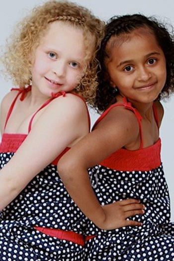 Gadis kembar bernama Kian dan Remee ini memiliki warna kulit yang berbeda. Kian yang adalah kakak memiliki kulit yang lebih gelap, sedangkan Remee adiknya, memiliki kulit yang putih dengan mata berwarna biru. Kasus ini sangat langka, dan ternyata kedua orangtua si kembar memang memiliki ayah dan ibu yang berbeda warna kulit pula.