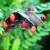 Tanaman rosary pea atau Abrus precatorius adalah benih yang cantik dilihat dengan perpaduan warna merah dan hitam, sehingga sering digunakan untuk perhiasan. Benih ini mengandung racun abrin dan akan berbahaya jika lapisan benih rusak atau tergores. Karenanya pembuat perhiasan lebih rentan terkena racun dibanding pemakainya. Tanaman ini bisa mencapai tinggi 20 meter dan menyebar di seluruh negara terutama negara beriklim tropis dan sub-tropis.Racun abrin ini lebih mematikan dibanding ricin, karena kurang dari 3 mikrogram abrin atau tidak sampai satu benih sudah cukup mematikan. Gejala keracunan yang muncul adalah sulit bernapas, demam, mual, ada cairan di paru-paru. Jika benih tersebut tertelan bisa menyebabkan mual, muntah, dehidrasi, gagal ginjal, hati dan limpa. Kematian biasanya terjadi dalam waktu 3-5 hari.