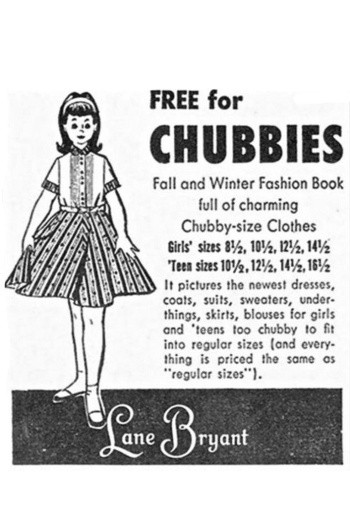 Anak-anak yang kelebihan berat badan nampaknya dianggap lebih menarik di zaman dulu. Buktinya pada tahun 1950-an, perusahan pakaian Amerika, Lane Bryant, menawarkan pakaian gratis bagi anak-anak yang bertubuh gemuk. Dalam poster iklan tersebut bertuliskan 'Free for Chubbies'.