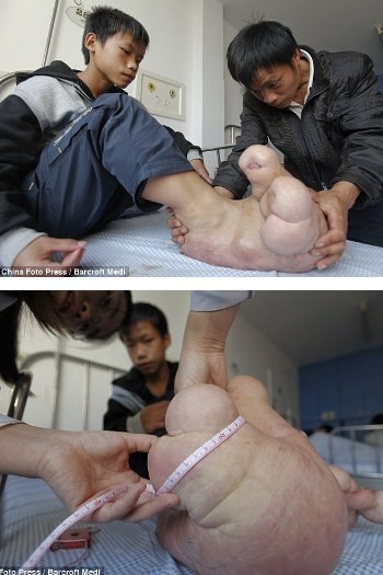 Xiao Meng (14 tahun) terlahir dengan congenital neurofibromatosis, suatu kondisi genetik yang menyebabkan kakinya terus membengkak. Tak hanya kaki, jari-jari kakinya pun ikut membesar dengan posisi agak bengkok ke atas.