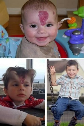 Dokter harus menanamkan (implan) 2 jaringan ekspander di bawah kulit yang tujuannya melebarkan kulit di dahi secara bertahap. Setelah kulit dahinya melebar dengan bantuan dua 'tanduk' itu maka dokter bisa mengambil kelebihan kulit di atas tanda merah itu.