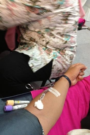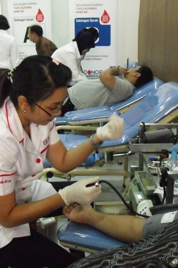 "Tidak perlu takut, sakitnya tidak seberapa kok. Buktinya, tidak ada yang meninggal karena donor darah kan? Rileks saja," pesan dr Farid.