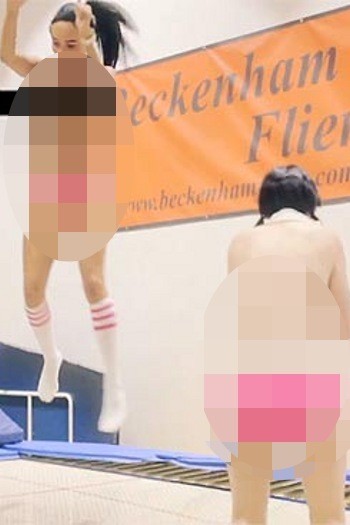 Gadis-gadis bertelanjang dada tampil dalam sebuah kejuaraan trampolin tingkat dunia, yang seluruh pesertanya adalah perempuan yang tidak pakai baju.