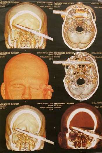 Ketika merasa ada yang tidak beres, dia memeriksakan diri ke rumah sakit dan terkejut melihat hasil rontgen. Paku sepanjang 8,25 mili berdiam di dalam otaknya. Beruntung paku ini tidak menimbulkan kerusakan parah dan dapat diambil oleh dokter.