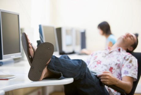 Solusi: Jika Anda memiliki pekerjaan yang mengharuskan Anda untuk duduk terus-menerus, cobalah untuk tetap aktif bergerak dan tetap berjalan-jalan. Setidaknya biasakan untuk bangun setiap 30 menit sekali, misalnya untuk sekadar berjalan-jalan ke luar kantor atau berkunjung ke meja teman.