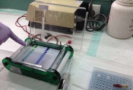 Tahapan ini memisahkan fragmen DNA sesuai ukuran molekul dengan menggunakan matriks gel dan memanfaatkan arus listrik. Tujuannya, untuk mengetahui ada atau tidak DNA target.