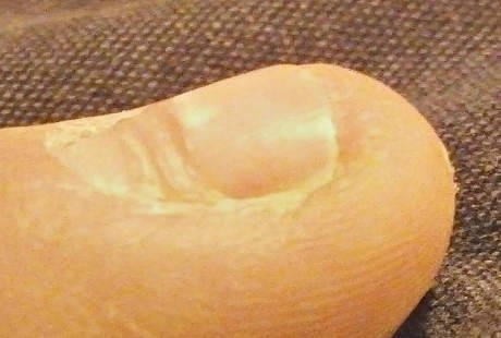 Kondisi ini digambarkan dengan kuku yang terkelupas sebagian sehingga terlihat kulit di bawahnya. Jika bukan karena cedera, ini bisa jadi pertanda kinerja kelenjar tiroid yang berlebihan.