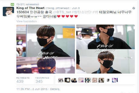Sang fan meyakini hal itu dilakukan karena pemerintah Korea meminta seluruh warga yang bepergian ke luar untuk mengantisipasi penyebaran MERS. Tampak pentolan BTS, V terlihat di bandara Incheon, Kamis (4/6) lalu memakai masker berwarna hitam. Di sejumlah akun fans BTS juga tergambar harapan para penggemar agar idola mereka senantiasa terjaga kesehatannya, dan terhindar dari wabah MERS.