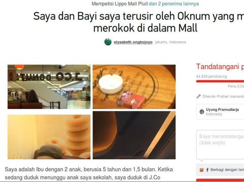 Jakarta - Nama Elysabeth Ongkojoyo belakangan ini banyak diperbincangkan. Ia menggagas petisi online setelah mengalami pengalaman buruk dengan perokok di J.CO Mal Pluit Village, Jakarta Utara.