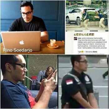 ![]() Sosok polisi ganteng yang terlibat dalam penumpasan aksi teror di Jl MH Thamrin (sumber: viral) |