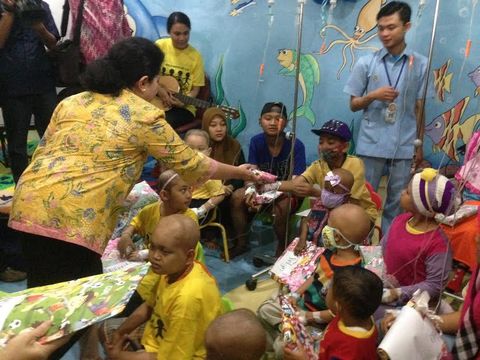 Beberapa anak yang namanya dipanggil ada yang berada di ruang perawatan dan tidak berada di ruangan tersebut. Semua anak terlihat bahagia mendapat kado yang diberi langsung oleh Menkes Nila. Usai membagikan kado, Menkes Nila lalu berfoto bersama anak-anak pasien kanker.