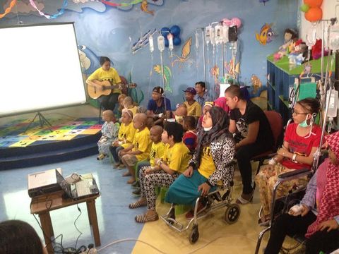 Tak berhenti sampai di situ, dengan diiringi alunan gitar yang dimainkan salah satu pasien remaja, Menkes Nila turut menyanyikan bagian refference lagu tersebut bersama anak-anak. "Aku pasti bisa...menikmati semua dan menghadapinya," penggalan lirik tersebut dinyanyikan Menkes bersama anak-anak.