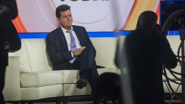 Charlie Sheen saat akan membuat pengakuan tentang diagnosis HIV-nya di sebuah stasiun televisi (Foto: Getty Images)