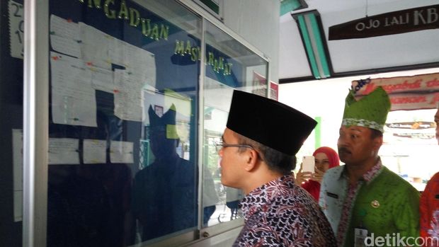 Bupati Anas membaca keluhan warga di mading. (Foto: Aditya) |