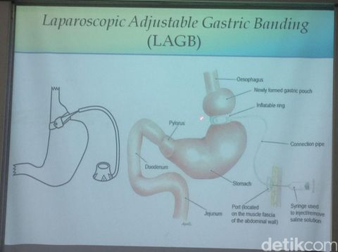 "Prinsipnya lambungnya ini diikat, bukan dipotong. Biasanya seminggu pasien merasa bisan terus minta dibuka. Saat ini prosedur ini mulai tidak populer. Dalam waktu 24 bulan, berat badan pasien turun 40 persen," kata dr Errawan.