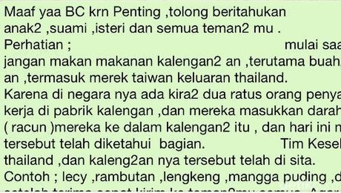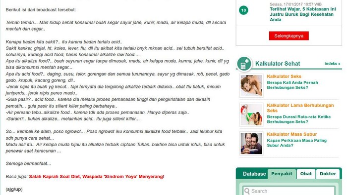 Lantas hoax seperti apa saja yang sempat beredar di tahun 2016? Simak lanjutan paparannya seperti dirangkum detikHealth berikut ini, Selasa (17/1/2017):