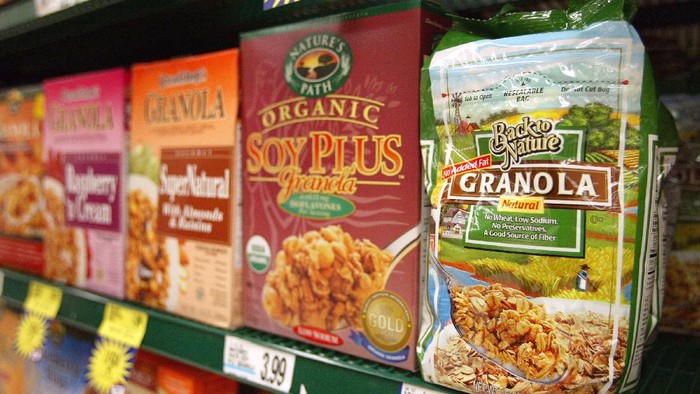 Makanan ini justru memiliki lebih tinggi lemak jenuh ketimbang sereal. Pilihlah granola yang sumber manisnya hanya berasal dari buah kering, sirup mapel atau madu, dan memiliki setidaknya 20 persen dari asupan serat harian yang direkomendasikan.