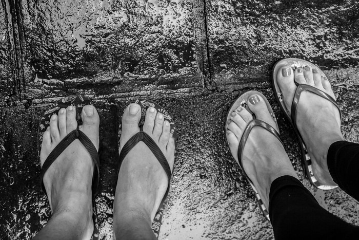 Segera cuci kaki dengan sabun sebersih mungkin. Sepatu basah sebabkan kaki menjadi bau karena bakteri dan jamur yang muncul. Tau kan kalau sepatu itu tempat bersarangnya kuman-kuman? Makanya, lekas bersihkan kaki segera setelah sepatu kebasahan.