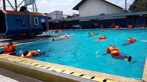 detikHealth berkesempatan menjajal simulasi penyelamatan pesawat jatuh di Lakespra (Foto: Widiya Wiyanti/detikHealth)
