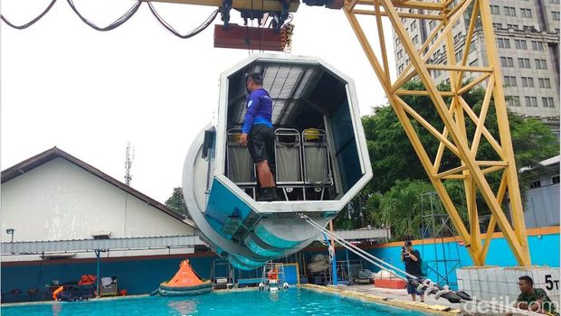 Simulasi ini dilakukan di Lembaga Kesehatan Penerbangan dan Ruang Angkasa (Lakespra) Saryanto, Jakarta Selatan, Kamis (13/12/2018). Dalam simulasi ini, ada tiga mode yang dilakukan. Yaitu pesawat yang jatuh terkontrol, semi terkontrol, dan tidak terkontrol.