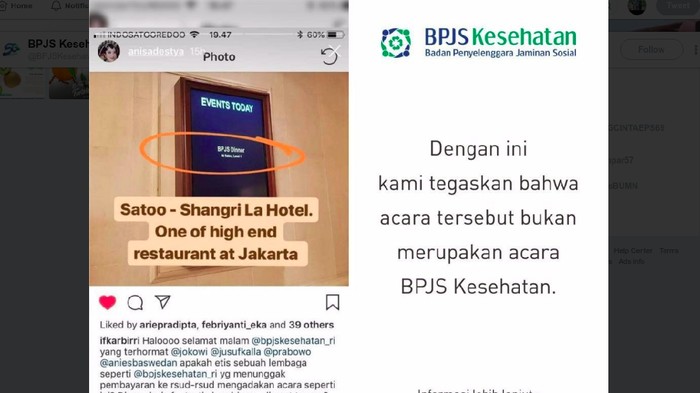 Di media sosial sempat beredar kabar bahwa BPJS Kesehatan berfoya-foya mengadakan makan malam di salah satu hotel mewah di Jakarta. Direktur Utama BPJS Kesehatan Fachmi Idris menanggapi informasi yang disampaikan dalam postingan tersebut dan menyebutnya sebagai hoax yang mencemarkan nama baik.