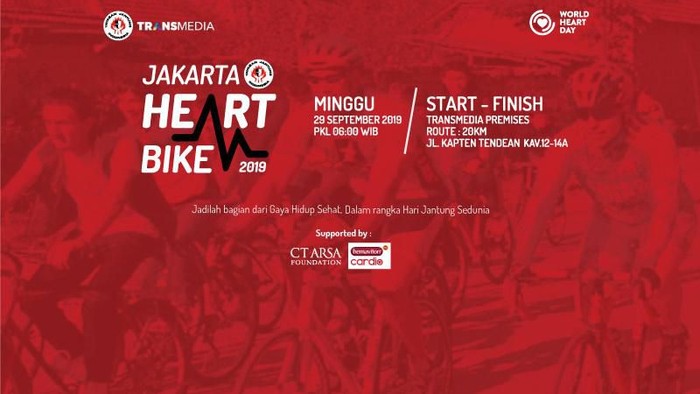 Demikian keseruan Jakarta Heart Bike 2019, selamat bagi para pemenang doorprize! Semoga semakin semangat berolahraga. Ingat ya, penyakit jantung bisa menyerang siapa saja di usia berapapun. Jaga kesehatan jantung dengan rajin olahraga dan menjaga pola makan seimbang.