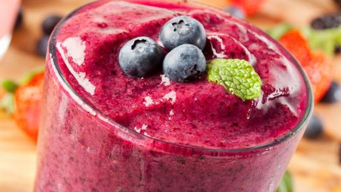 Kombinasikan bubuk protein kedelai, yoghurt plain dan berry menjadi smoothie. Untuk menambah rasa manis, Anda bisa menambahkan sedikit madu. Dengan total 139 kalori, asupan mengenyangkan dan menyegarkan ini sudah memberikan Anda 9 gram protein dan serat 4 gram.