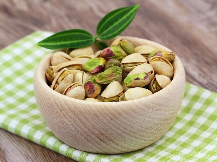 Pistachio menawarkan 6 gram protein per ons dan hanya 100 kalori per 30 butir kacangnya. Salah sebuah hasil penelitian menyebut mengonsumsi pistachio dengan kulitnya bisa membuat konsumsi kalori 42 persen lebih sedikit daripada memakan kacang yang telah dikupas sebelumnya.