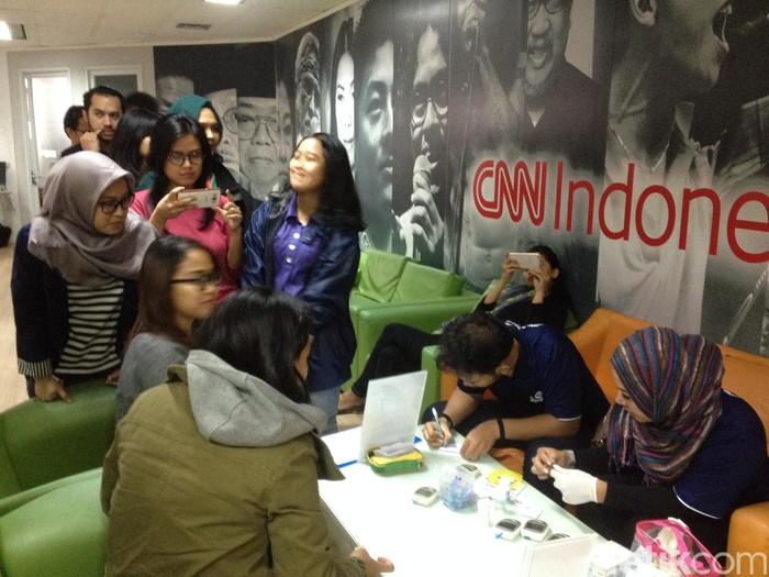 Selain talkshow mengenai bahaya kanker payudara, acara ini juga menggelar pemeriksaan kesehatan gratis seperti pemeriksaan gula darah, kolesterol dan asam urat untuk peserta, karyawan Detik.com dan CNN Indonesia. (Foto: Puti Aini Yasmin/detikHealth)