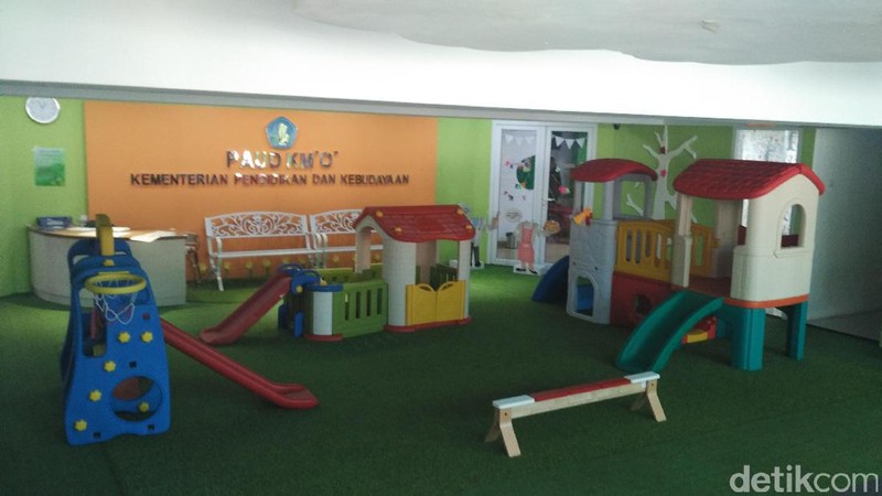 Bagian tengah PAUD KM 0 juga diisi oleh area musik. Anak diberi stimulasi pendengaran dan bisa memainkan alat-alat musik yang sudah tersedia.