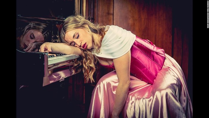 Angie Kupper, penggagas proyek 'Finding Your Fairytale' berperan sebagai Sleeping Beauty. Sebab, Kupper mengidap narkolepsi yang bisa membuatnya tidur mendadak. (Foto: Chris Moehr/ Finding Your Fairytale via CNN)