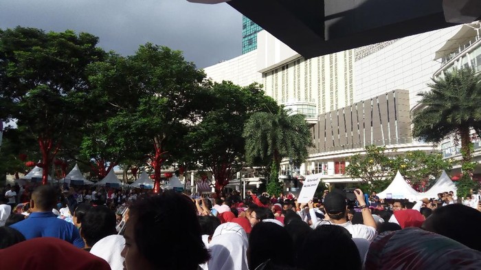 Acara puncak World Cancer Day Carnival diisi dengan program #danceforcancer. Para survivor kanker beserta partisipan acara dan pengunjung bernyanyi dan berjoget diiringi oleh suara Krisdayanti. (Reza/detikHealth)