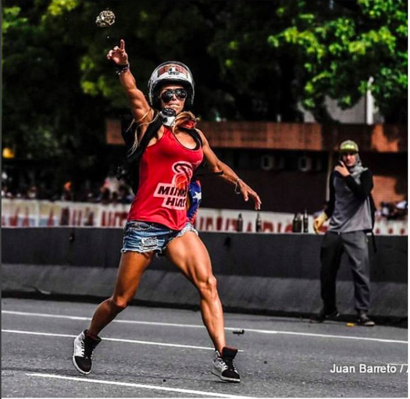 Caterina Ciarcelluti terlibat dalam sebuah demonstrasi anti pemerintah di Venezuela, dan tubuhnya yang berotot tertangkap kamera saat sedang melempar sesuatu ke arah petugas. (instagram @caterinakt)