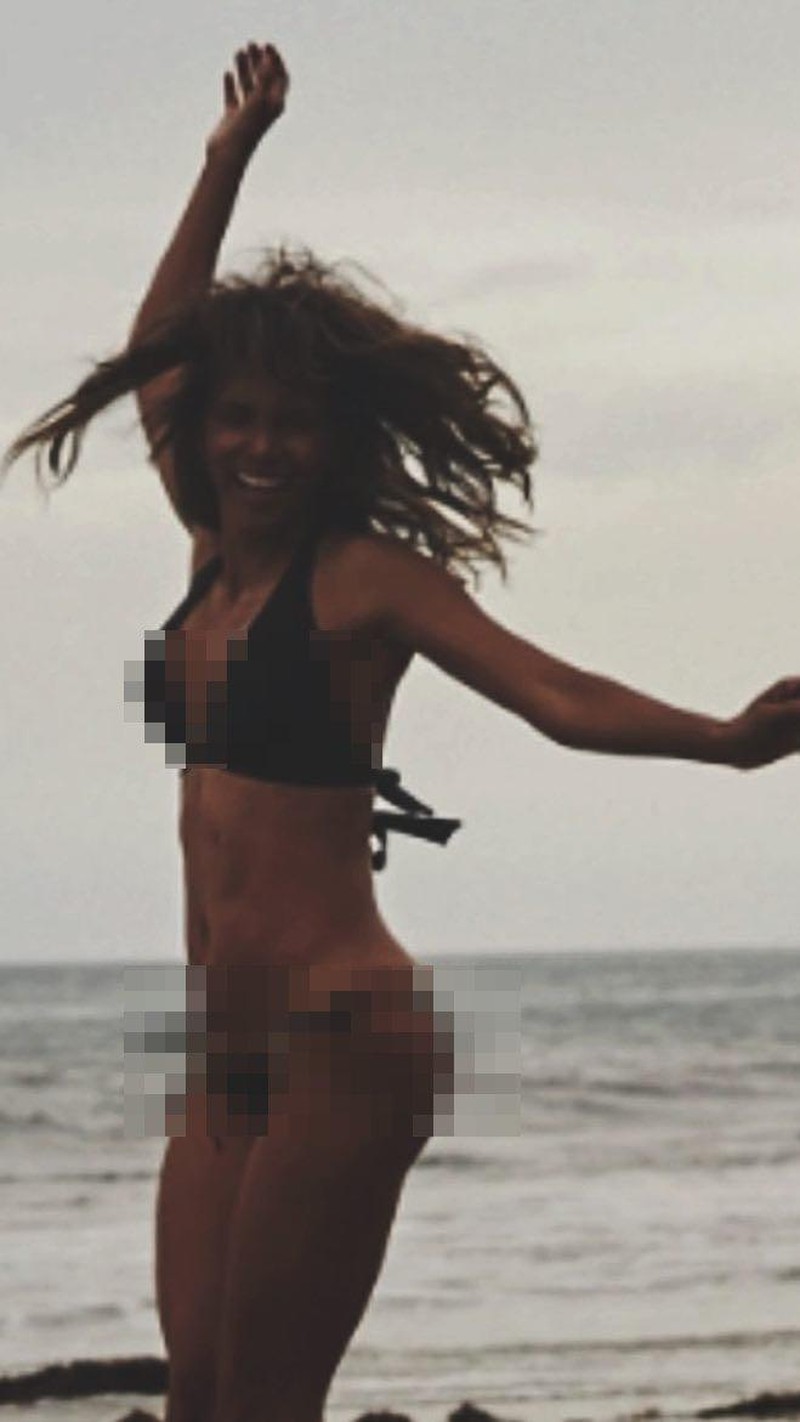 Halle Berry baru-baru ini mengunggah fotonya sedang menggunakan bikini di pantai. Foto tersebut memperlihatkan otot perutnya yang kencang dan rata. Foto: Instagram/HalleBerry