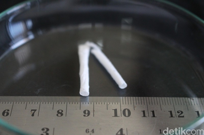 Graft pembuluh darah bikinan lima mahasiswa jurusan Teknobiomedik Universitas Airlangga ini terbuat dari PLLA (poly-L lactic acid), kitosan dan kolagen. PLLA disebut aman karena akan terurai menjadi asam laktat yang dapat diserap tubuh. Sedangkan kombinasi antara kitosan dan kolagen dapat membantu perlekatan sel, sehingga ke depannya ketika graft terurai dan akan tergantikan oleh sel tubuh pasien sendiri. Foto: Iffa Aulia Fiqrianti/UNAIR