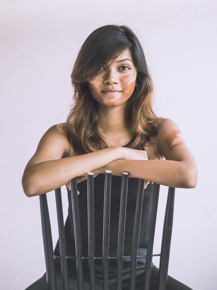 Jakarta - Kondisi kulit vitiligo membuat tubuh para wanita ini terlihat belang. Meski demikian mereka tetap percaya diri berpose menunjukkan kecantikannya.