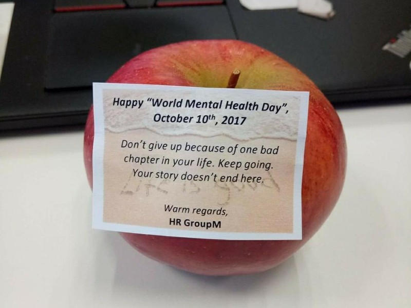 Satu kantor membagikan buah dan sebuah pesan penyemangat untuk semua karyawannya. (Foto: Facebook/Artika Isnanda)