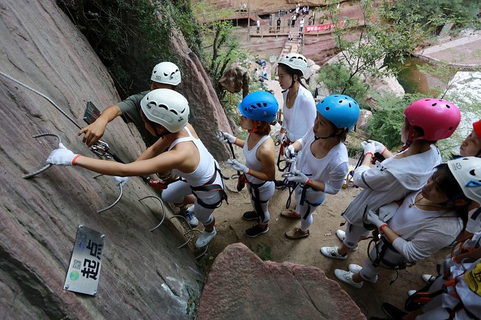 Jakarta - Para wanita pecinta yoga di China mencoba hal yang baru. Mereka berlatih di atas tali di tebing curam setinggi nyaris 200 meter.