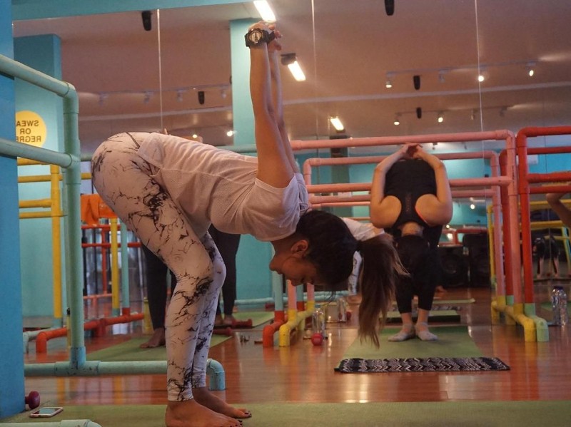 Gerakan barre conditioning merupakan perpaduan dari gerakan pilates, balet dan yoga. Foto: Widiya Wiyanti/detikHealth