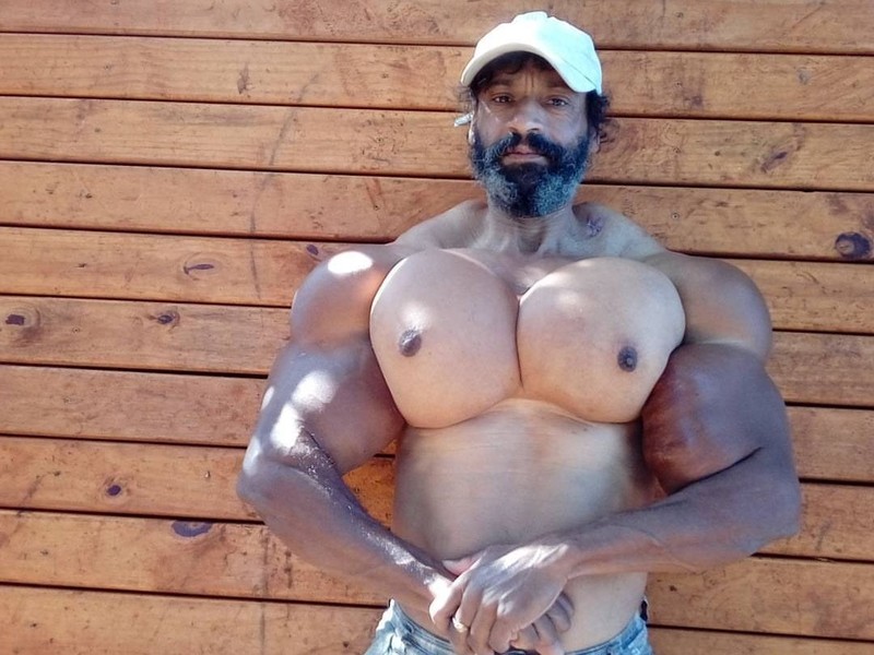 Meski lengan Segato terlihat besar, karena bukan tersusun oleh jaringan otot yang sesungguhnya lengan sebesar itu tidak sebanding dengan kekuatannya. (Foto: Instagram/valdir_synthol_)
