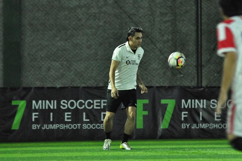 Vicky Nitinegoro, yang sudah menyandang status duda sejak usia 25 tahun ini cukup rajin melakukan olahraga, salah satunya sepak bola. Foto: Instagram @vickyniti13