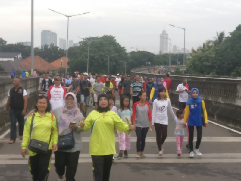 Pada hari Minggu (14/1) pukul 06:00 WIB Jalan Layang Non Tol (JLNT) Antasari di Jakarta Selatan ditutup untuk kendaraan umum atau car free day (CFD). (Foto: Firdaus/detikHealth)