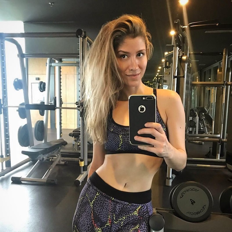 Millane rutin melakukan olahraga di tempat fitness. Tak lupa selfie dilakukannya sebelum olahraga, begini tampilan perut ratanya. Foto: Instagram @millanefernandez