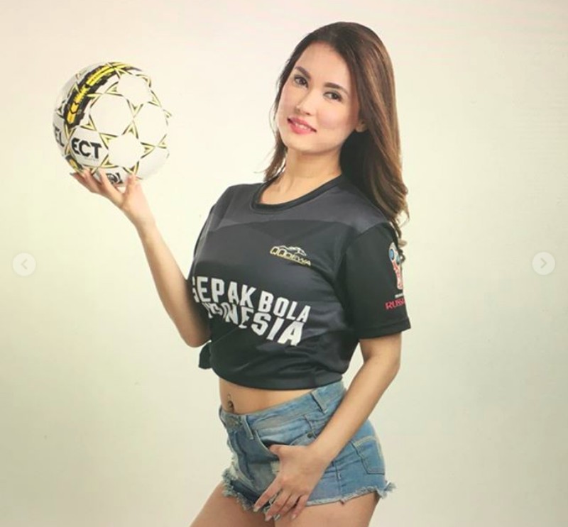 Mantan aktris film porno asal Jepang, Maria Ozawa, menjadi viral di dunia maya setelah mengenakan kostum Timnas Indonesia. Foto: Instagram @maria.ozawa