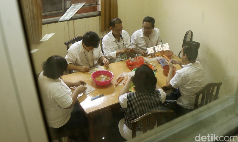 Para ODGJ yang sudah pulih dan tak lagi menjalani rawat inap di RSJ Soeharto Heerdjan dibekali kemampuan memasak. Tampak di foto, mereka sedang menyiapkan isi risoles. (Foto: Rifkianto Nugroho/detikHealth)