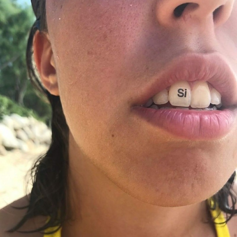 Tato jenis ini tergolong unik, karena bagian tubuh yang ditato bukan kulit melainkan gigi. Tren menato gigi muncul beberapa tahun terakhir dengan sebagian orang menyebutnya sebagai 'tatooth'. (Foto: Instagram/nopaintattoo)