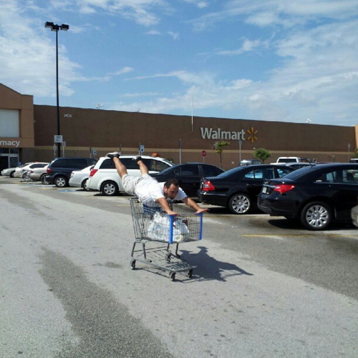 Kocak! Pria ini planking di atas keranjang belanjaan Walmart. (Foto:instagram/astrodamu5)
